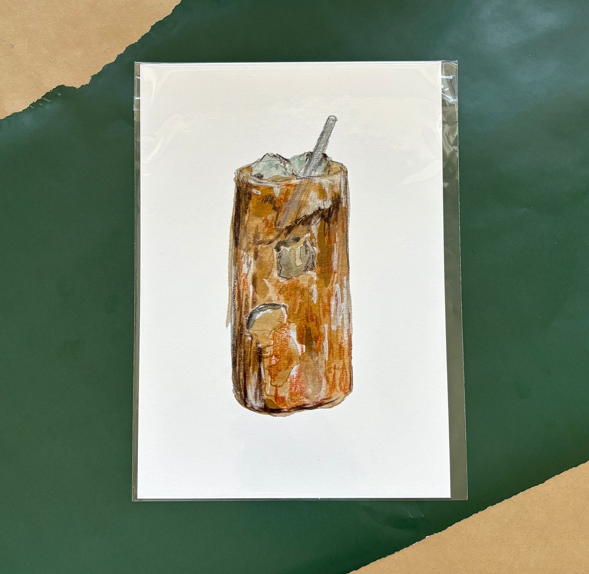 A printed reproduction of one of my original illustrations featuring a glass of iced coffee.