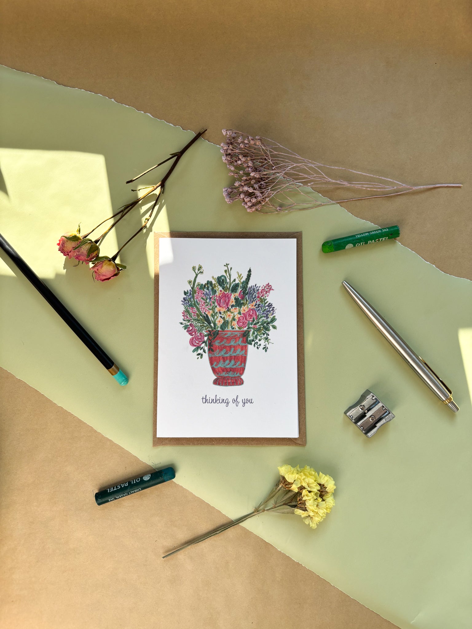 I designed the illustration for this card using mixed media such as gouache paint, pencils and oil pastels.