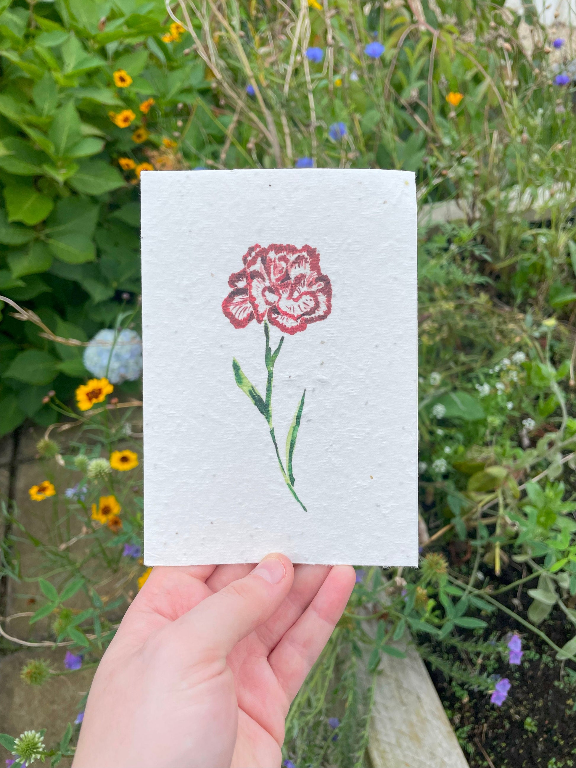 This plant able card features a reproduction of my watercolour carnation illustration.