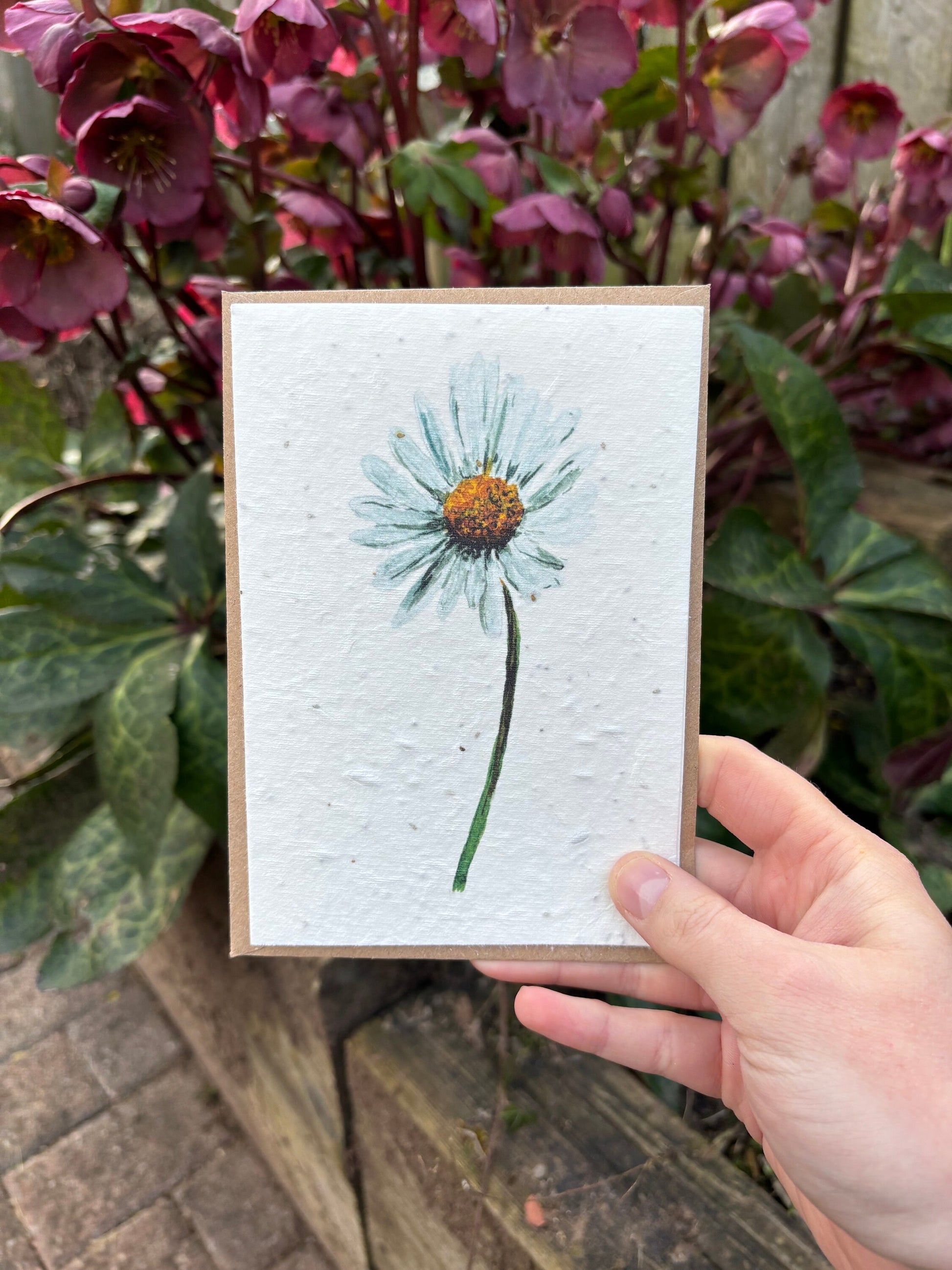 This plant able card features a reproduction of my watercolour daisy illustration.