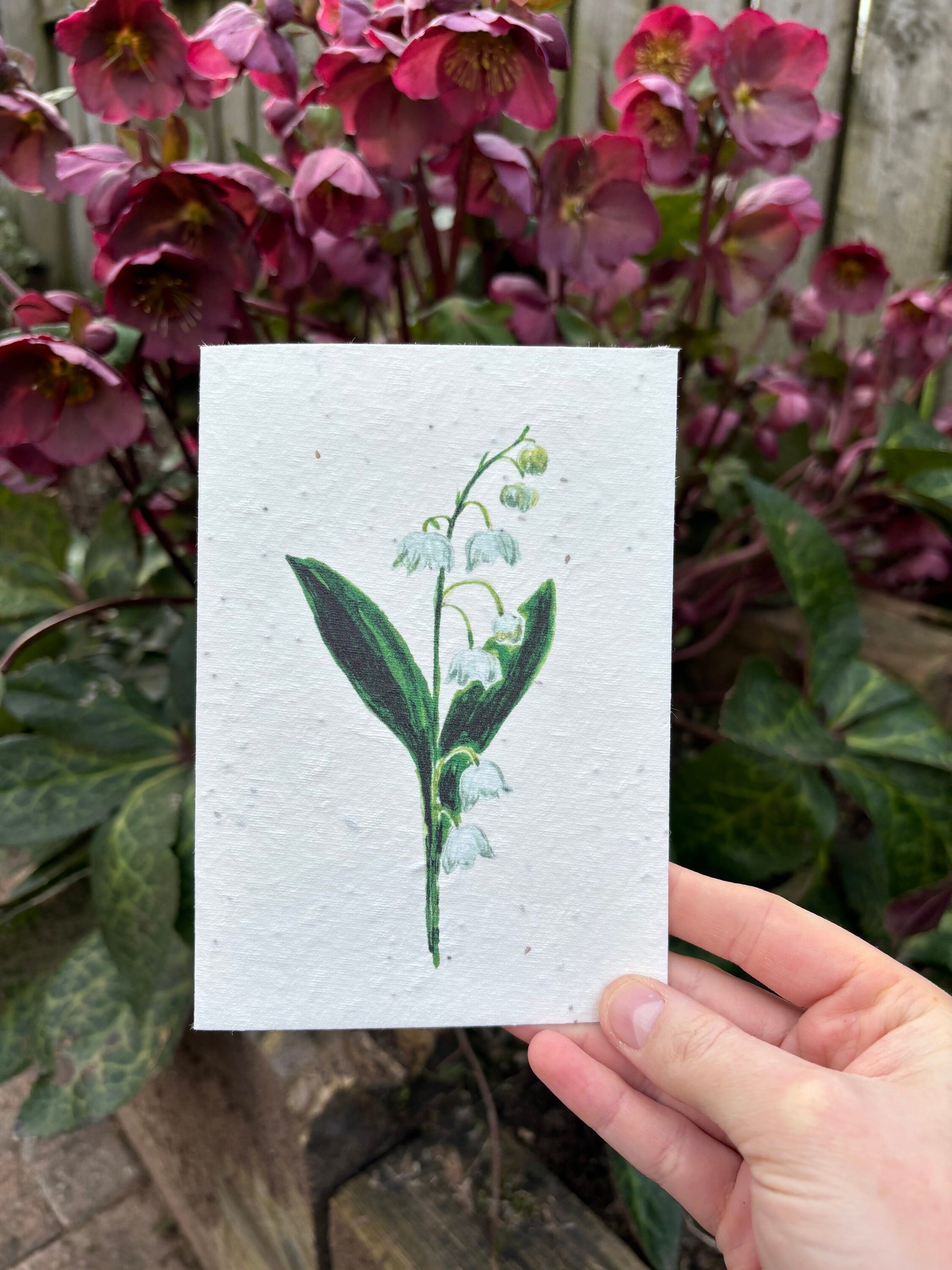 This plant able card features a reproduction of my watercolour lily of the valley illustration.